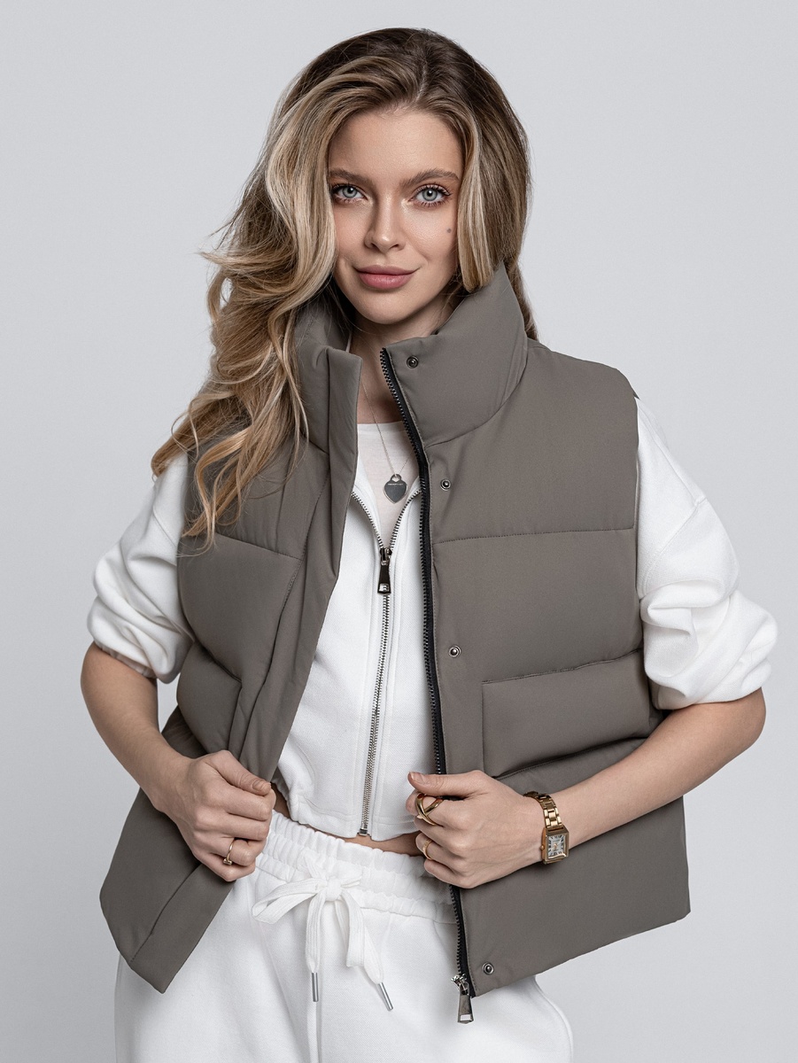 ✨ Укороченный жилет - идеальный вариант для невысоких девушек. Он визуально вытягивает силуэт и делает образ легким.