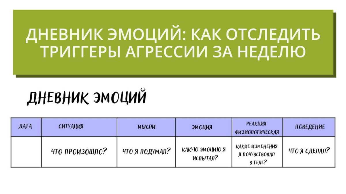 ? Заведите «Дневник эмоций» на 7 дней. Это инструмент из КПТ для выявления автоматических реакций. ✅Что фиксировать: ⌚Время — когда возникла эмоция. 👀Ситуация — кратко опишите событие (без оценок). 💬Мысль — какая мысль пришла первой («Он меня не уважает», «Опять я виноват»). 🫥Чувство — назовите эмоцию и её интенсивность (1–10). 🤷♀Реакция — что вы сделали (крикнули, замолчали, сжали кулаки). ⛓Последствие — что было после (вина, облегчение, конфликт). ✅Как работать: Заполняйте дневник 2–3 раза в день или после каждой вспышки раздражения. В конце недели проанализируйте: - какие ситуации повторяются; - какие мысли усиливают злость; - какие последствия чаще всего. ✅Выберите 1 триггер и продумайте альтернативную реакцию (например: «Вместо ухода — спросить: „Что именно нужно исправить?“»). ❗Бонус: прикрепляю PDF‑шаблон дневника. Скачайте, распечатайте или используйте в телефоне! https://vk.ru/wall-198026938_873 Начните сегодня и через неделю поделитесь: какой триггер ока