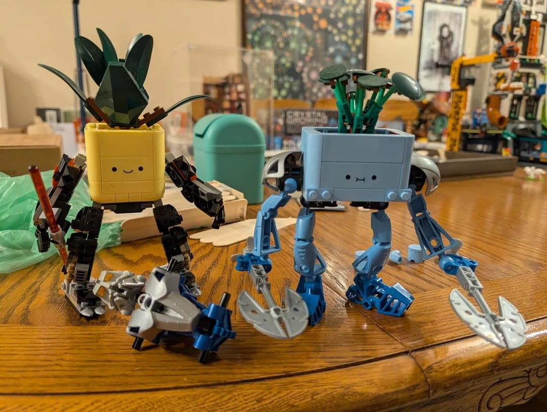 🪴 spderweb собрал максимально странные, но гениальные штуки: кашпо-мехи из деталей Bionicle. Один — в стиле Дарта Мола в жёлтом цвете, второй — голубой «бионикловый» вариант. Выбираем лучшего ⬇️ 🔥 — Дарт Горшок (жёлтый) ❤️ — Голубой Бионикловый Кашпоид Когда мультивселенная окончательно сошла с ума 🤪 🤔 Рари Брик
