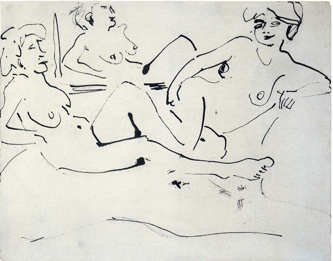 Рисунок «Две женщины, лежащие перед зеркалом» Эрнста Людвига Кирхнера