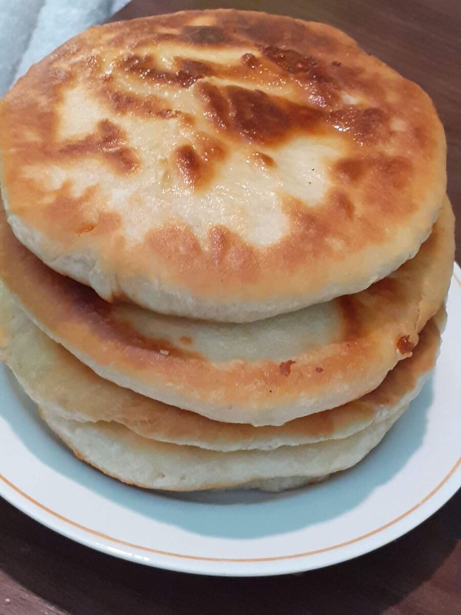 Формируем из теста шарики и раскатываем лепешки толщиной около 1 см. В центр лепешки кладем шарик из сыра, залепляем сверху шарик и раскатываем тесто с начинкой в лепешку.