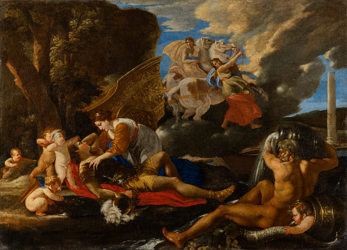 Источником вдохновения для картины «Ринальдо и Армида» Никола Пуссена послужил эпизод из поэмы Торквато Тассо «Освобожденный Иерусалим». Волшебница Армида желала погубить крестоносца Ринальдо, но, увидев его спящим, была поражена красотой юноши и влюбилась в него. Любовное чувство Пуссен изображает не в лицах героев, а переносит его на окружающую природу. Так у изголовья Ринальдо резвятся амуры, посылая воображаемые стрелы в сердце Армиды. Картина относится к периоду, когда Пуссен был увлечён живописью Тициана — это было время высших колористических достижений мастера в его творчестве. Ровный золотой свет объединяет все краски полотна — блики на доспехах, червонных рукавах платья волшебницы, её волосах. Делимся с вами деталями картины, которые вы могли не заметить. Увидеть картину можно в зале 21 Главного здания музея (Волхонка, 12). 💜Пушкинский музей в MAX