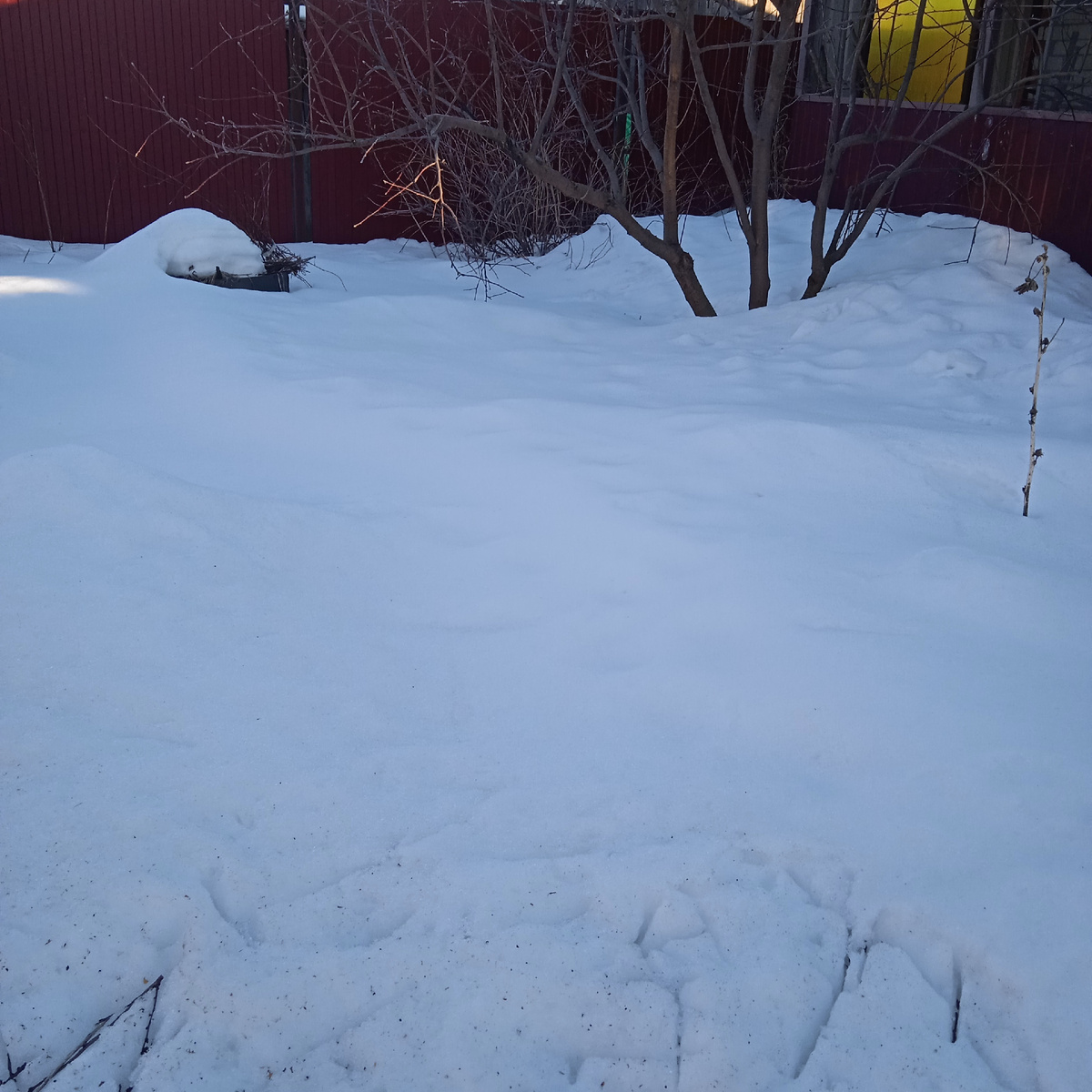 Первая декада весеннего месяца закончилась, а мы тепла не видели. Даже сегодня ночью мороз был -12. Но, зато днем +12 и сразу жить хочется! Лужи кругом огромные, еле пробралась до кур. Это у меня единственный прогулочный маршрут зимой. Направо и налево от дорожки еще сугробы немалые. Ну, как тут обрежешь яблоню, когда к ней не подобраться. А сделать это необходимо. Но, если так и будет продолжаться, снег сойдет быстро, он рыхлый. Вот только за день открылись все укрытия роз. Тарелочки свои открыла, вода в них стоит. Скоро будет ясно, что перезимовало, а что погибло. Вот на столике видно, что будра хорошо перенесла зиму. И это несмотря на то , что морозы садили без снега. Крепкая она. Буду еще сажать. Остальные растишки еще под такой снежной шапкой. Сюда снег летел из снегоуборочной машины. Тоже вчера еще ничего не было видно. Зато синички в эту зиму хорошо попировали в туях. Вокруг все в веточках и остатках от их пиршества. Присмотрелась, а там одна шелуха, ядрышки они повыклевывали.