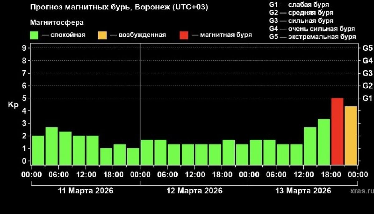 В Воронеже 13 марта ожидается слабая магнитная буря с 18:00 до полуночи