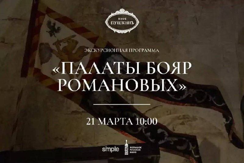 21 марта ресторан «Кафе Пушкинъ» приглашает на завтрак с экскурсией в Палаты бояр Романовых – единственный в России музей, знакомящий