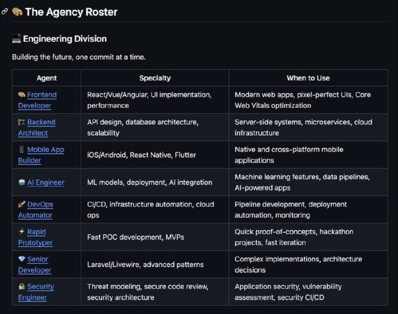 🧠 Внутри — разработчики, дизайнеры, маркетологи, продакты и менеджеры. У каждого прописана своя роль, манера общения, рабочие процессы и даже критерии эффективности. По сути, это набор готовых цифровых личностей для ИИ — можно подключить их к Claude Code и запускать как настоящих членов команды. Репозиторий взлетел мгновенно: 20 000+ звёзд всего за неделю. Передаём задачи в надёжные руки ⚡️ 🤖 Ботоферма в деле!