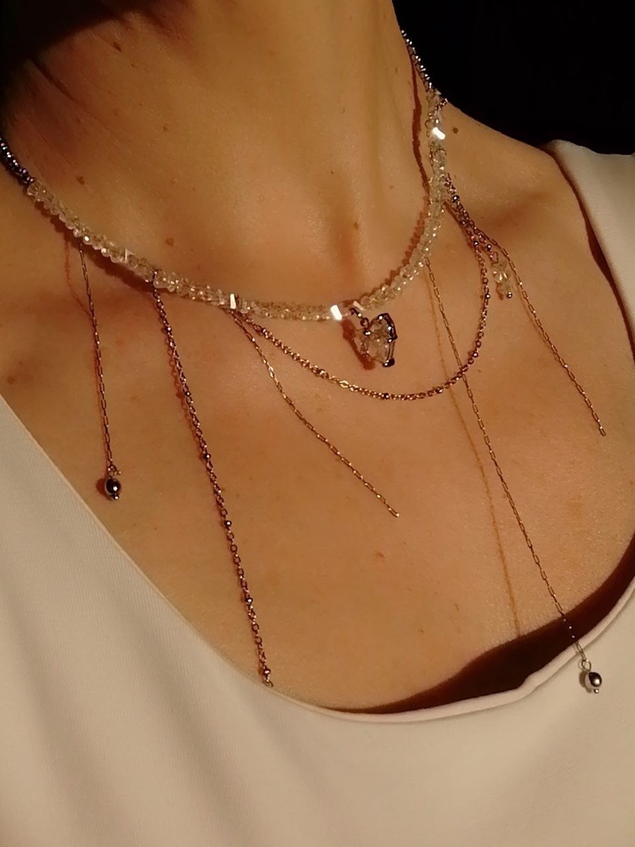 Элегантный чокер: сочетание мерцающего алмазного стекла и глубокого гематита, дополненное трогательной подвеской-сердцем.