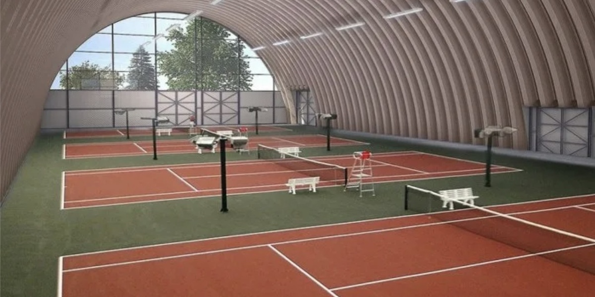 - Рекомендуемый пролет: 28-30 метров. Это дает не только корт (18.3 м), но и комфортные боковые зоны (по 4-5 м с каждой стороны).