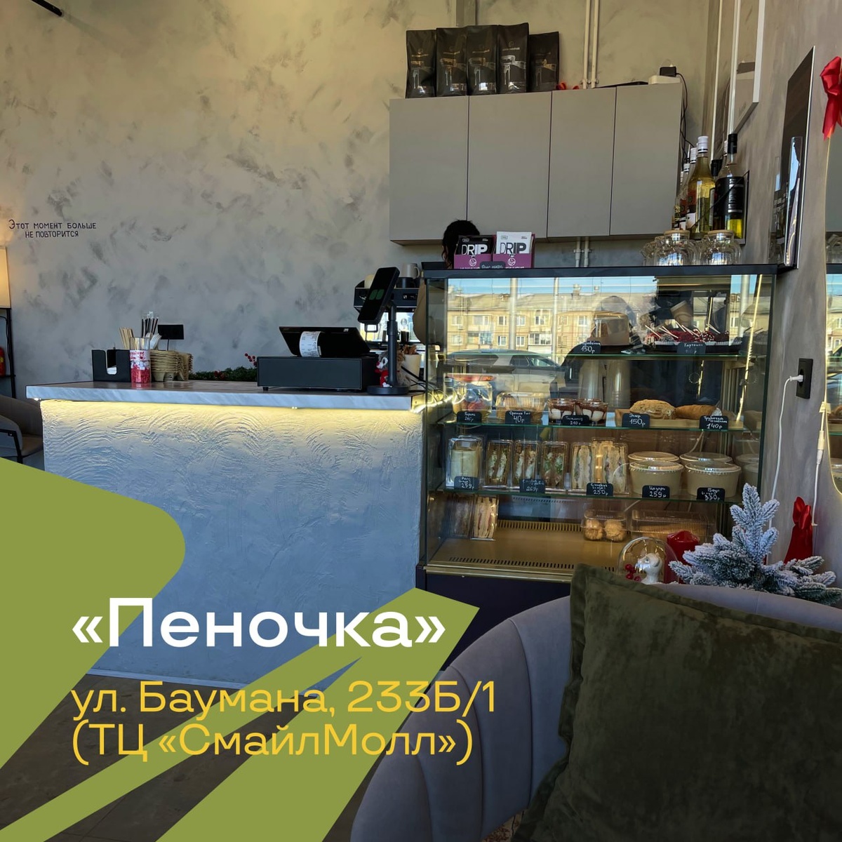 » 📍 ул. Баумана, 233Б/1 (ТЦ «СмайлМолл») Молодая кофейня, которая находится в самом конце микрорайона Ново-Ленино. Однажды меня там удивила кофейня «Птичка», которая входит в мой личный топ-10 кофеен Иркутска. Ехала с мыслями о том, что «Пеночка» должна быть не хуже, ведь находится с ними в одном торговом центре. Готовят кофе на бленде Бразилии и Эфиопии от иркутского обжарщика «Инжинирия». Кофейня просторная, в соцсетях я видела, как здесь проходят мероприятия. А ещё часто попадались шуточные рилсы, как тяжело ребятам выживать в непростое для общепита время. Ну, а кому сейчас легко? Но важное всегда было и будет — это качество и отношение к продукту. А здесь оно есть. Спустя четыре минуты после заказа мне принесли напитки, а ещё сладкий комплимент в виде конфетки. Мелочь, а приятно. По внешнему виду заметила, что эспрессо ждал, когда бариста доделает капучино, чтобы отдать мне сразу оба напитка. Об этом говорят «умершие» крема на эспрессо. Сильно на вкусе это не отразилось. Эспре
