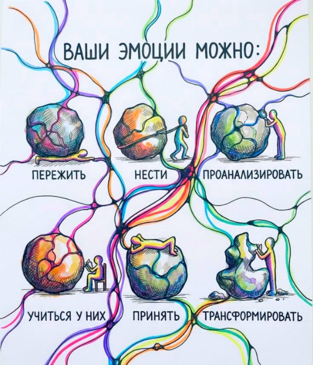 ? Бессознательно мы используем стратегии работы с эмоциями, полученные от родителей. Как было принято у них, так делаем и мы. ✔️Было принято не показывать - скрываем и делаем "хорошую мину при плохой игре", привет тем, у кого "всегда все нормально". ✔️Было принято терпеть - терпим. ✔️Было принято делить эмоции на плохие и хорошие - отказываемся от плохих, делаем вид, что не злимся и не обижаемся. ✔️Было принято выплескивать гнев сразу и бесконтрольно - срываемся и раним близких. ✔️Было принято не обсуждать - молчим. 👊Есть еще контрстратегия. Это когда то, как было принято у родителей нас сильно ранило или пугало, и мы решаем, что так никогда делать не будем, или будем - наоборот. У этого варианта, как ни странно, тоже есть минусы для нас. Но когда мы входим в осознанные отношения с самим собой, у нас появляется выбор, как обходиться с внутренним процессами. Мы начинаем понимать про что они для нас. Какую пользу несут, от чего защищают, куда двигают... Ведь, по сути, эмоции -