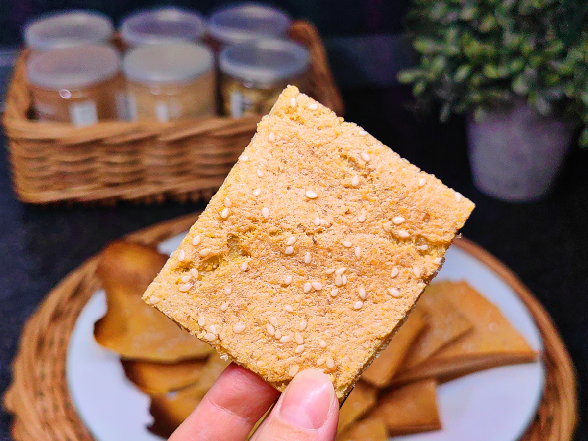 Аккуратно отделите пласт от бумаги (удобно делать это лопаткой). Переверните его и отправьте его обратно в духовку ещё минут на 15-20. После запекания острым ножом или ножницами нарежьте на кусочки произвольной формы - треугольники, квадратики, полоски.