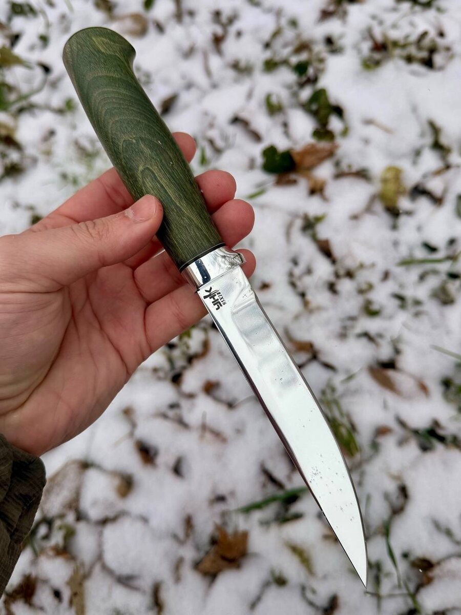 ! 👋 Как у вас дела? Делитесь в комментариях, у кого какая погода? ☀️❄️ У нас, как всегда, сюрпризы: думали, что весна уже вступила в свои права, а зима, видите ли, решила на прощание задержаться и порадовать нас снежком. ❄️ Но ничего, синоптики обещают потепление, ждем-с! А чтобы холодными вечерами было чем согревать душу, хотим показать вам вот такого красавчика. 🤩 🔪 Нож бурятский в наличии. Смотрите, какая работа! Это не просто инструмент, это настоящее искусство: ✨ Сталь: нержавеющая 95х18 (держит заточку отлично). ✨ Рукоять: берёза индиго. Посмотрите на эти узоры! Дерево словно живое, переливается благородным оттенком. Ну как можно пройти мимо такой красоты? Кому оформить такого красавчика в коллекцию или в надежные помощники? 👇 Пишите в личные сообщения или ставьте "+" в комментариях!