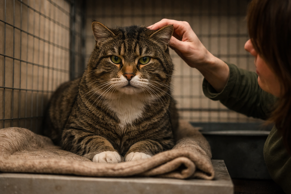 Я осмотрел его внимательно. Ничего срочного, но набор прошлого читался по телу как плохой роман без редактора. Старые драки, недокорм, вероятные инфекции, долгий стресс, недоверие, потом адаптация. И всё это — в одном обычном серо-полосатом коте, которого никто не брал “из-за взгляда”.