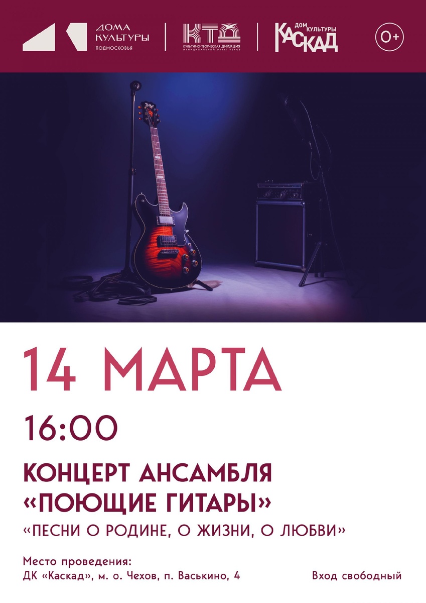 ✨ Душевный музыкальный вечер в посёлке Васькино 🎸 Концерт ансамбля «Поющие гитары». 👉 Творческий коллектив под руководством талантливой Ольги Александровны Тиховой. 👉Виртуозное сопровождение на аккордеоне — Руслан Юрьевич Алфёров. 🎵В программе прозвучат любимые мелодии и песни, которые находят отклик в каждой душе: о величии родного края, о простых жизненных ценностях и, конечно, о самом прекрасном чувстве — любви. Вас ждет теплая и дружеская атмосфера. 📆 14.03.2026 🕛 16:00 🏢 ДК «Каскад» 📍 г.о.Чехов, п.Васькино, д.4 🪙 Вход свободный❗️ ⭐Поддержать канал голосом ✅ Мероприятия Чехов https://dzen.ru/id/66cc4b48e9ef144699238a51 https://vk.ru/chekhov_events http://dzen.ru/chekhov_events