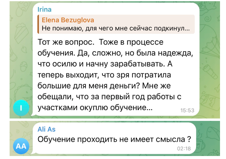 Это можно получить только в формате менторства, когда опытные практики буквально за руку ведут вас до результата. До получения участка или до стабильного заработка. До сильных партнерств или до собственного земельного бизнеса.