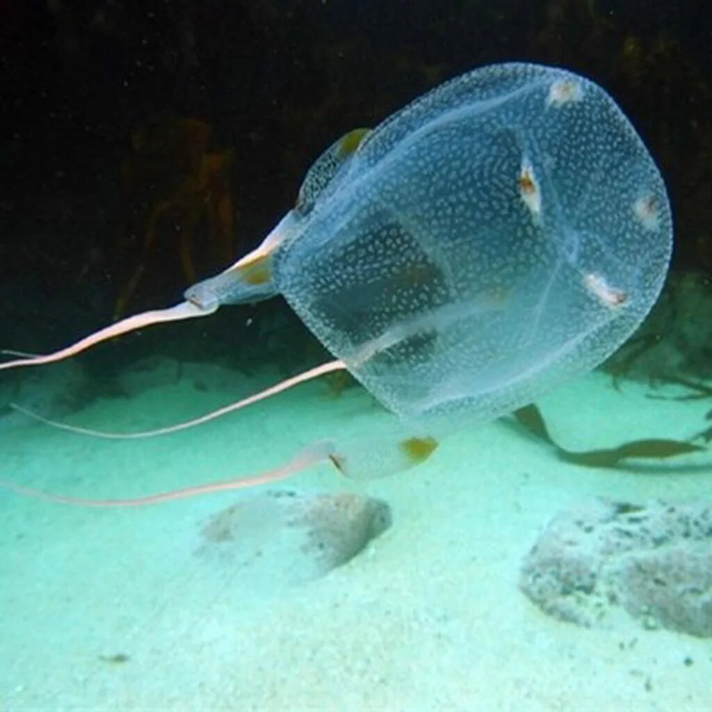 Кубомедузы получили своё название из-за формы зонтика — на поперечном срезе он имеет квадратную форму . Это единственные медузы, которых из-за уникального зрения выделили в отдельный класс Cubozoa, отделив от остальных сцифоидных медуз.