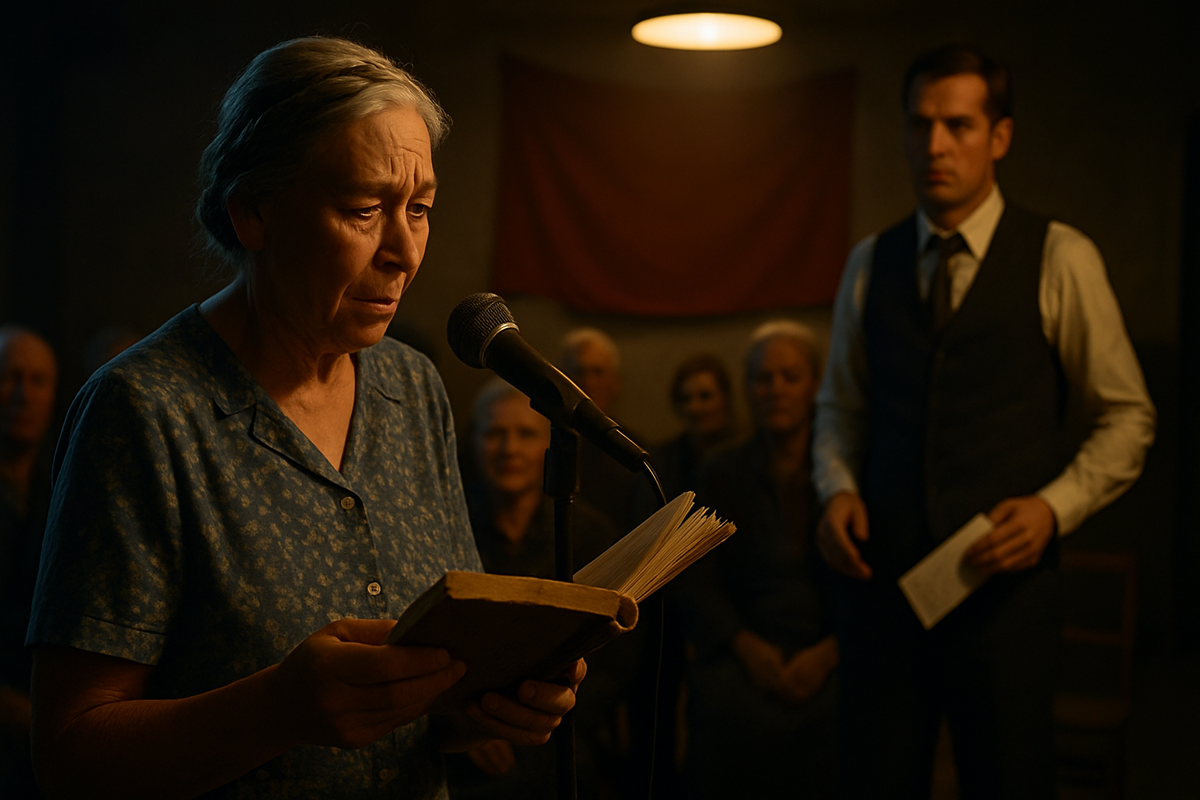 В клубе было непривычно людно. Пришли почти все, кто остался в деревне, – человек тридцать. Бабушки в платках, два деда на задних рядах, Нинка из продуктового с мужем. Суслов в костюме стоял у сцены – маленького помоста из фанеры, накрытого красной скатертью. Артём – рядом, в рубашке и жилетке, без пальто, с микрофоном в руке. Оператор стоял сбоку, камера на штативе. Ещё один парень держал микрофон на длинной палке – я уже знала, что это называется «пушка».