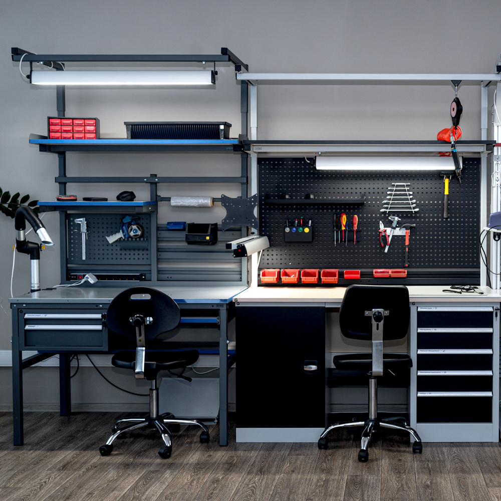 Рабочее место, прогибающееся под тяжестью, тумба с заедающими ящиками, шаткий стеллаж — это далеко не «мелочи». Это прямые потери, с которыми приходится сталкиваться производству: простой оператора, риск травмы, время на ремонт. Настоящая цена решения измеряется не чеком при покупке, а стоимостью владения оборудованием за весь срок службы. Качественная мебель окупается ежедневно: тишиной механизмов, отсутствием аварийных остановок, уверенностью в каждом креплении и бесперебойной работой цеха. Что скрывается за термином «промышленная мебель»? Это не просто столы в «прочной амуниции». Промышленная мебель — это специализированные решения, созданные для нагрузок, вибраций, агрессивных сред и постоянного взаимодействия. Верстаки с усиленными каркасами, тумбы с противовесами, стеллажи с регулируемыми полками, шкафы для инструмента — такие решения служат там, где обычные конструкции сломались бы всего за сезон. Применяются они везде: от сборочных линий и ремонтных боксов до лабораторий и скла