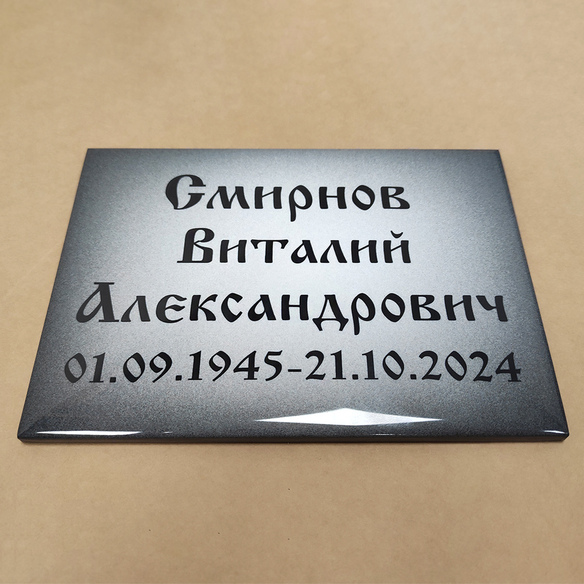 Керамогранит рождается из смеси глины, полевого шпата, кварца и минеральных пигментов. Эти компоненты прессуются под высоким давлением, а затем обжигаются при высокой температуре. В этом огне частицы материала спекаются в монолит, полностью исключая пористость и делая изделие почти неуязвимым для внешней среды. Это надёжный материал для ритуальной таблички, ведь благодаря своей структуре он практически не впитывает влагу. Это значит, что зимой, когда замёрзшая вода могла бы разрушить менее плотный материал, керамограниту не страшны ни морозы, ни перепады температур. Он не трескается, не расслаивается, не теряет своей целостности. Изображение на керамогранит наносится особым способом: пигмент впекается в структуру материала при высокотемпературном обжиге, становясь его неотъемлемой частью. Именно поэтому портреты и надписи на таких табличках не выцветают под палящим солнцем десятилетиями, сохраняя первоначальную чёткость, яркость и глубину. Ещё одно важное достоинство — возможность созд