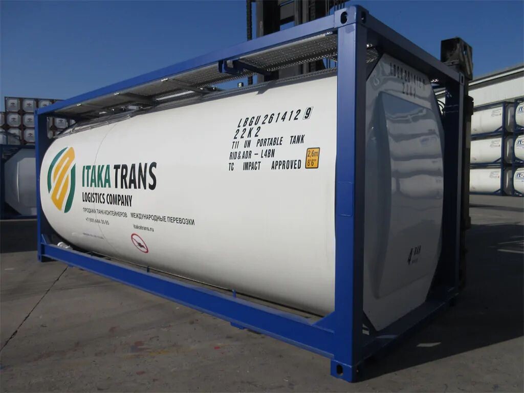 - 20‑футовый танк‑контейнер предназначен для мультимодальных перевозок.