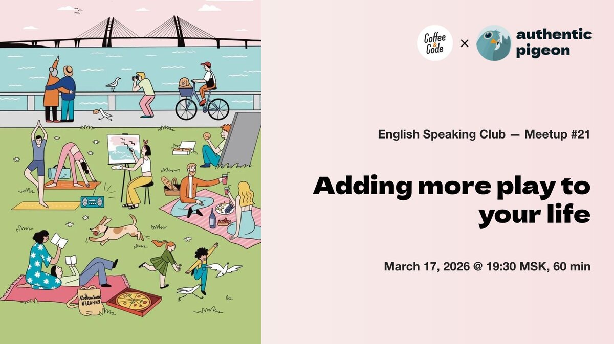 Митап №21 в онлайн-клубе английского языка Authentic Pigeon × Coffee&Code — Adding More Play To Your Life
