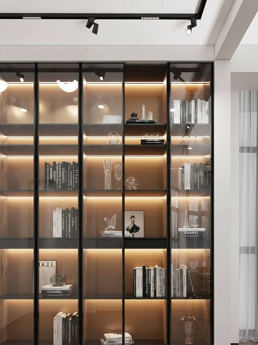 решения с использованием стеклянных фасадов. Это могут быть гардеробные, библиотеки, кабинеты и другие системы хранения. 🔸Профили с отделкой «чёрный шлифованный» и «золото шлифованное (анодировка)» отличаются строгой элегантностью, добавляя мебели уникальный стиль и шарм. 🔸Некоторые профили позволяют изготавливать фасады высотой до 3000 мм. Никаких лишних стыков — только идеальная вертикаль и чистые линии. В компании «Мебель-Комплект» мы знаем, как сделать вашу мебель не просто функциональной, а по-настоящему стильной. #МебельКомплект #РамочныйПрофиль #ВысокиеФасады Мы в мессенджере MAX подписаться