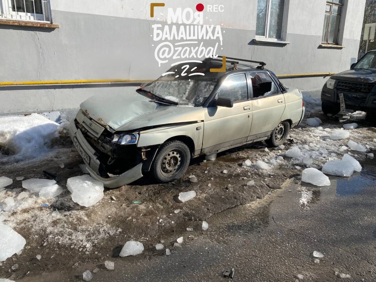 В Балашихе на проспекте Ленина, 3 с крыши упали ледяные глыбы и повредили три автомобиля.