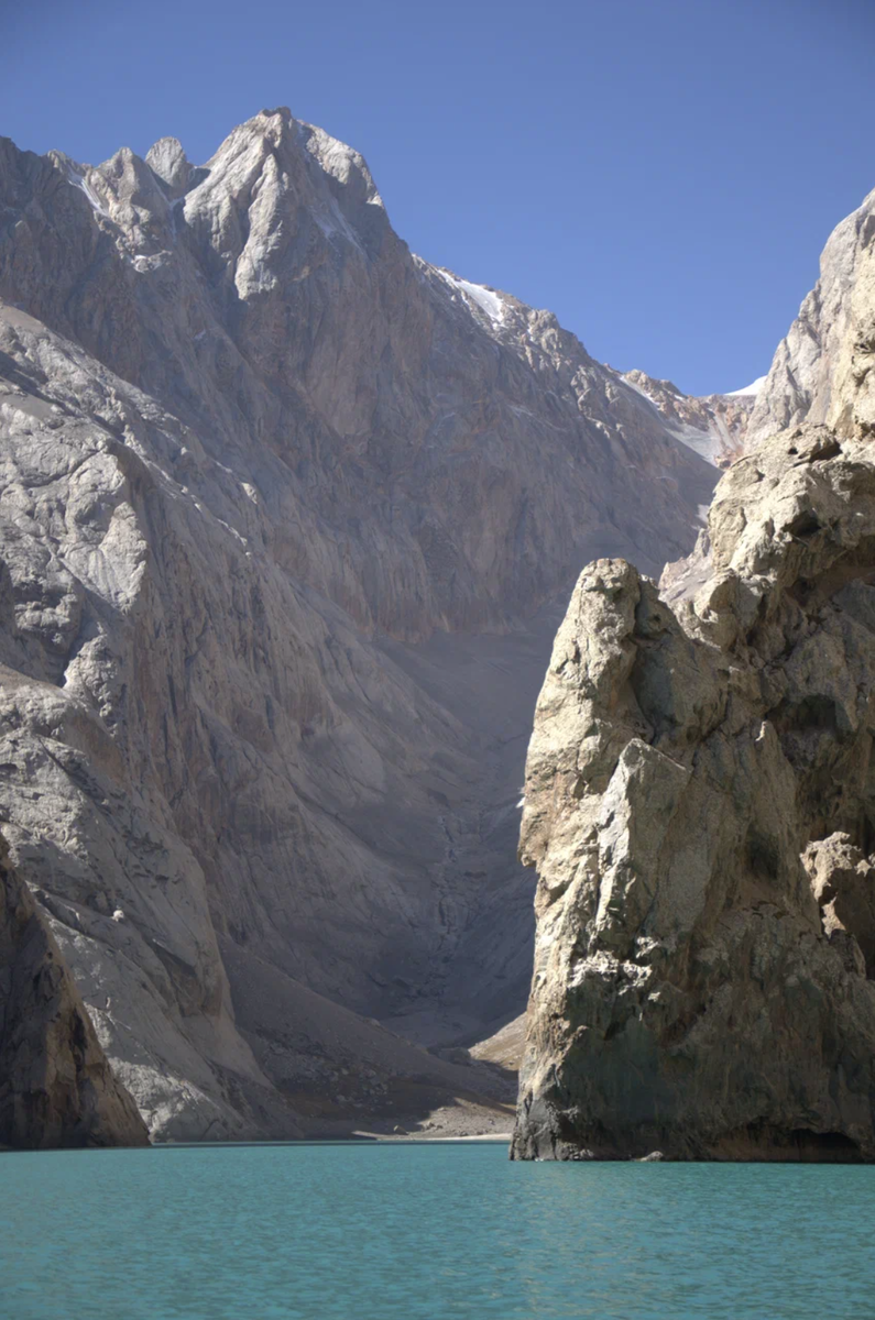Вода Кель-Суу имеет тот самый сюрреалистический бирюзовый цвет, который обычно появляется в местах, где ледники перемалывают камни в мельчайшую пыль.