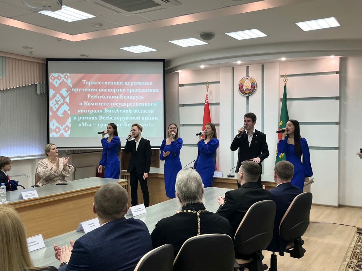 М. Машерова поздравил школьников, получивших свои первые паспорта 🔴Всебелорусская акция «Мы – граждане Беларуси!» прошла 11-го марта на базе Комитета государственного контроля Витебской области. Для участников акции первым секретарем ПО ОО «БРСМ» университета Ольгой Кошталевой была подготовлена тематическая выставка, посвященная памяти комсомольцев-героев; педагогом дополнительного образования отдела студенческого творчества и культурно-досуговой деятельности Цыганенко Ариной и специалистом кафедры инженерной физики Китаровым Денисом проведена увлекательная игра «Конституция Республики Беларусь», а завершилось мероприятие музыкальным подарком от Народного коллектива «Студия эстрадной песни «Шанс»», который порадовал ребят своим творчеством. #новости