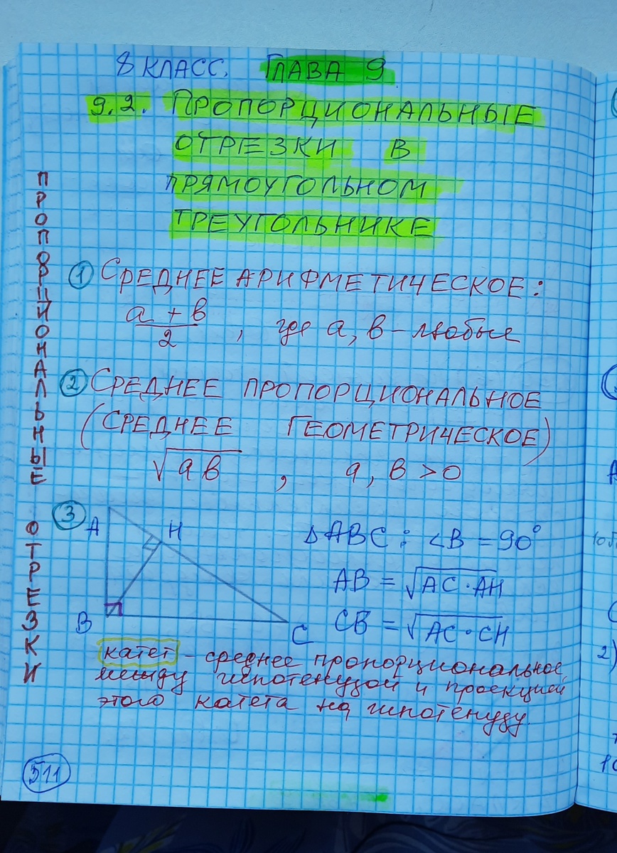 Пропорциональные отрезки в прямоугольном треугольнике.