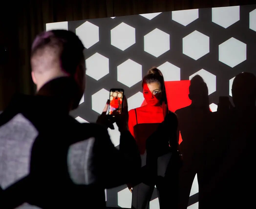 Технологичные фотозоны — это интерактивные локации, где гости становятся частью динамичного визуального ряда. Они объединяют художественные и технологические решения, превращая обычные кадры в эффектный контент. Такие форматы привлекают внимание, вовлекают участников и идеально подходят для мероприятий, где важен вау-эффект. Проектор выводит на стену или баннер яркие анимированные изображения — узоры, надписи и тематические картинки, разработанные специально под событие. Гости становятся частью динамичного фона, создавая оригинальные, живые и эффектные кадры. Такая зона превращает обычное пространство в интерактивную арт-инсталляцию, где каждое фото выглядит уникально. Эта фотозона идеально подходит для презентаций, корпоративов, вечеринок и камерных мероприятий. Она привлекает внимание гостей и делает фото и видео яркими, интересными и готовыми к публикации. Особенно эффектно смотрится в полной темноте, когда динамический свет полностью раскрывает художественные возможности проекции.