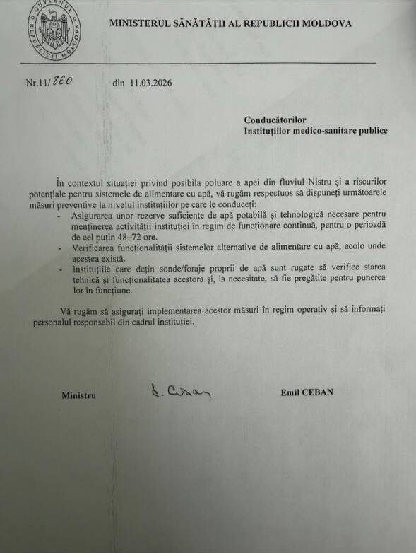 Согласно циркуляру, больницы должны обеспечить резерв воды минимум на 48–72 часа, проверить альтернативные системы водоснабжения, а также техническое состояние собственных скважин и водозаборов. Документ опубликовал мэр Кишинёва Ион Чебан. 🙄Меры названы превентивными и направлены на то, чтобы медучреждения могли продолжать работу даже при возможных перебоях с водоснабжением. @eNewsmd.online