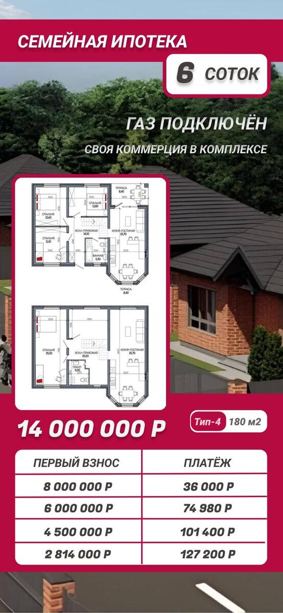 ₽ . Газ . Свет 15 кВт . Участок 6 соток . Площадь дома - 180 м2 ☎️ +79384280210 Пишите в любой мессенджер. Оставьте заявку через наш бот @Brif11bot Подписаться | Консультация