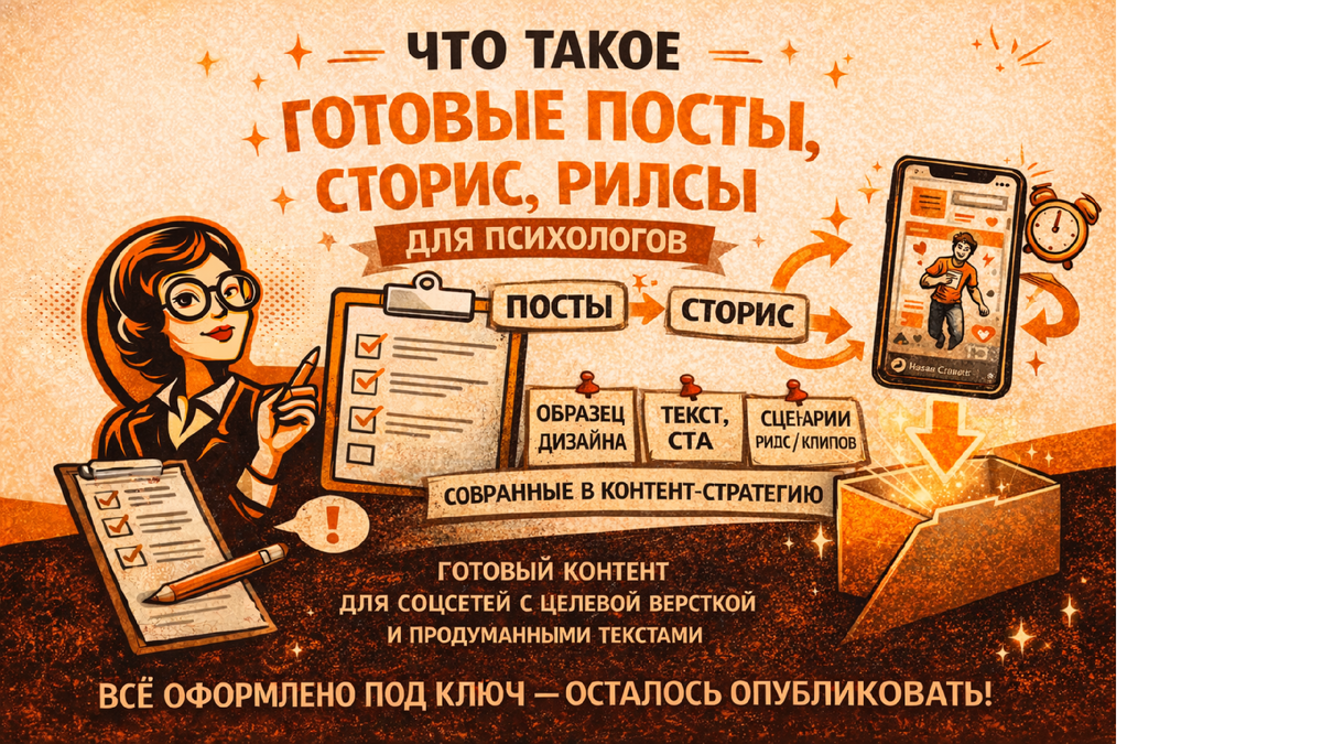 1. Сценарий сторис: ценность психолога 2. Пост: Я человек с опорой, даже в трудные времена 3. Пост: Почему тревога начинает управлять жизнью, а не просто проходит 4. Сценарий сторис: Как сохранять устойчивость в тревожное время 5. Готовые сторис: Быть сильной 6. Сценарий сторис: Создание семьи мужчинам в 40+ 7. Пост: Другая сторона медали, семья в 49 лет 8. Сценарий сторис и готовые сторис: Низкая самооценка часто маскируется под «реализм» 9. Сценарий сторис: Внутренний критик 10. Сценарий сторис и готовые сторис: Продажа консультации психолога для мужчин 11. Сценария сторис 1: Почему я сомневаюсь в себе 12. Пост про успех 13. Сценарий сторис: Мне 30 лет, я не заработала свой первый миллион. 14. ПОСТ - КАРУСЕЛЬ: Какая ты, если у тебя "не было" отца 15. Сценарий сторис: Я знала, что я сильная, смелая, но не знала, что на столько 16. Сценарий сторис: Сепарация (продажа) 17. Продающий пост терапевтической группы. 18. Сценарий сторис: Женская терапевтическая группа «Путь к себе» Новый пак