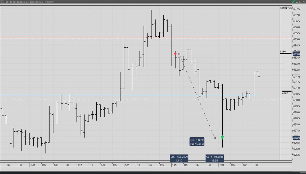 ▫️ Татнефть +1% 📈 Точка входа ( СЛП ) 💰 Риск | Прибыль ( 1к 5 ) Красная линия на графике показывает где поставил стоп ! 🥳 Поздравляю всех, кто заработал !!! 💬 Бесплатный | Чат - ПЕРЕЙТИ #сделки