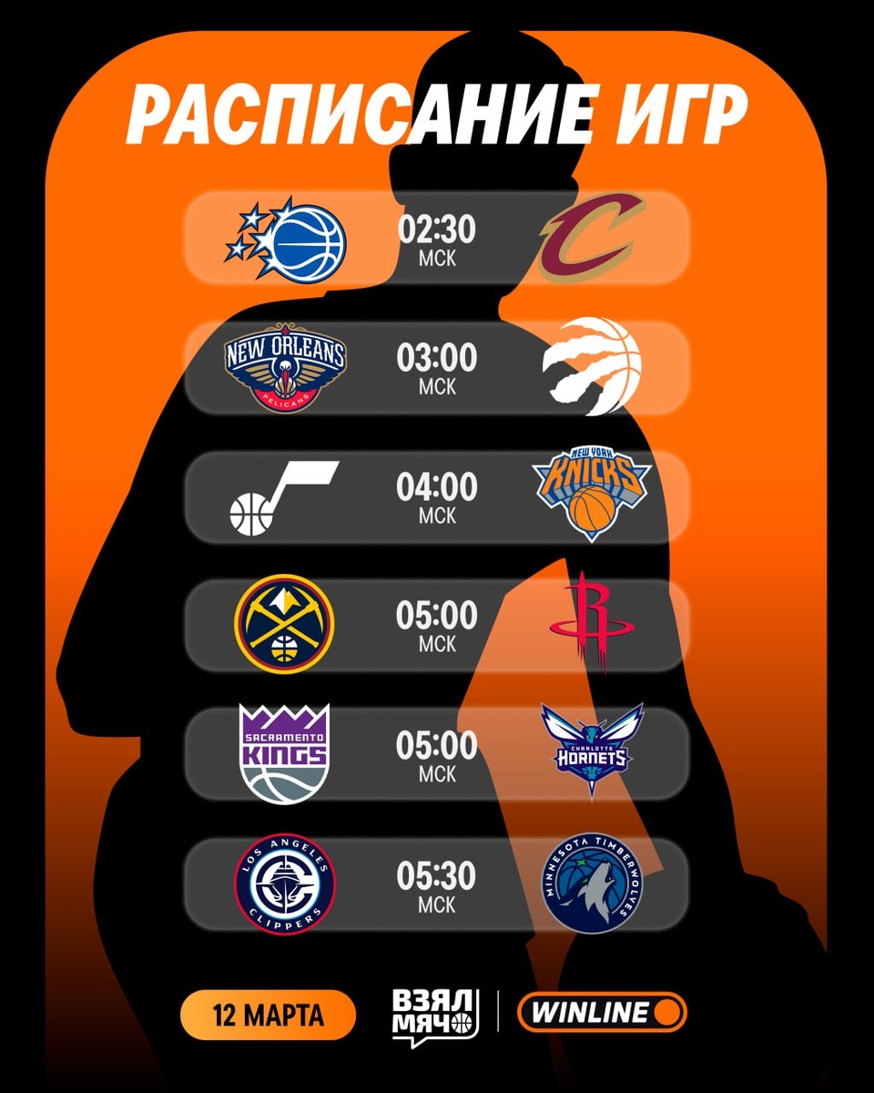 ! Нас ждёт серия классных игр, затем Абака покажет вам битву Йокича и Дюранта, а на десерт остаётся заруба Кавая и Эдвардса. Трансляции абсолютно всех игр смотрите в нашей группе ВК 👈🏼 02:30 | Орландо — Кливленд 🎙 Матвей Юдкин 03:00 | Новый Орлеан — Торонто 🎙 Андрей Каспарян 04:00 | Юта — Нью-Йорк 🎙 Виталий Чубаев 05:00 | Денвер — Хьюстон 🎙 Сергей Абаев 05:00 | Сакраменто — Шарлотт 🎙 Артём Тихонов 05:30 | Клипперс — Миннесота 🎙 Дмитрий Сидоренко Какие матчи будете смотреть сегодня? 🏀 ПОДПИШИСЬ — ЗДЕСЬ ЖИВЁТ БАСКЕТБОЛ!