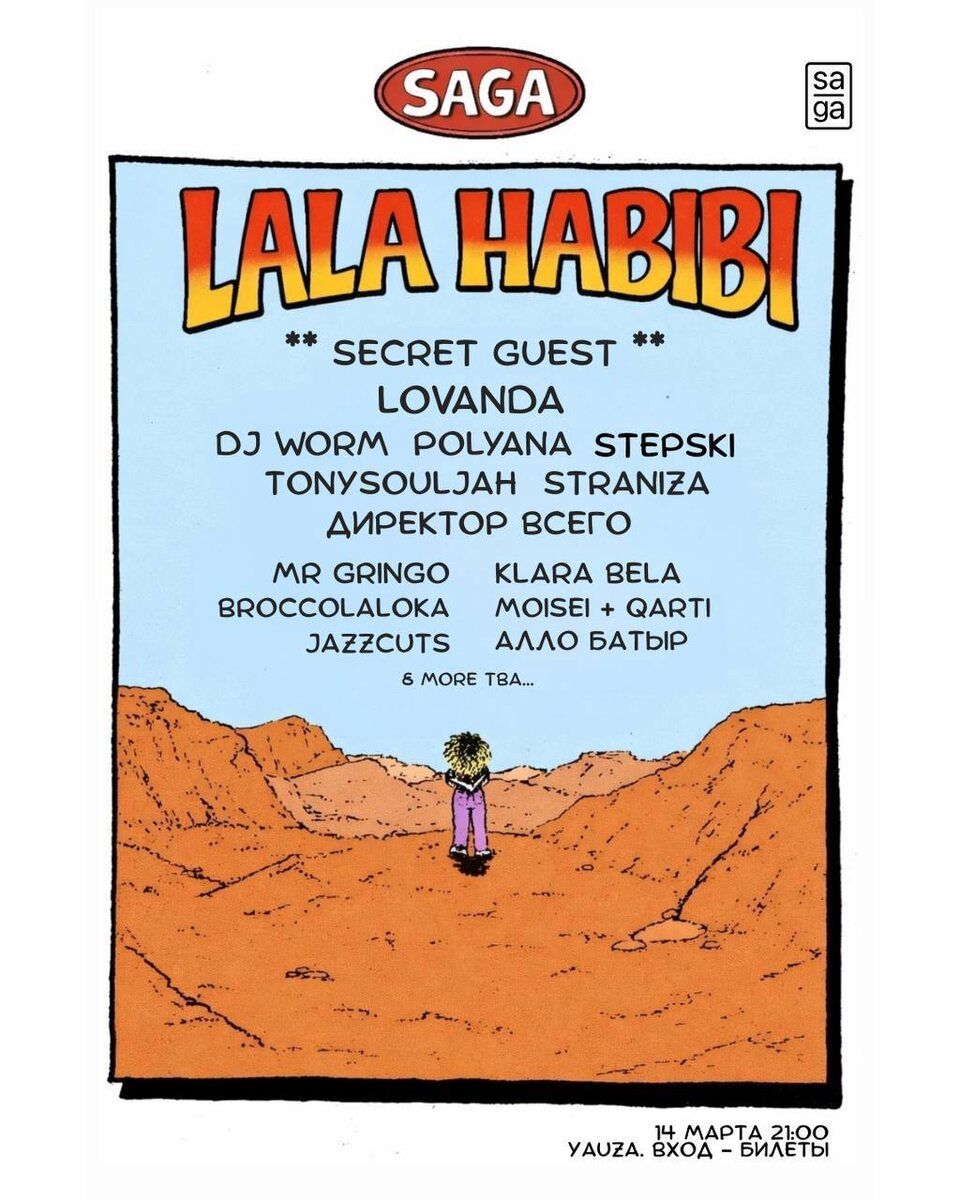 14 марта В эту субботу отмечаем День рождения половинки дуэта LOVANDA. На празднике состоится премьера нового r&b-сингла с арабскими специями LOVANDA — HABIBI. А также будут специальные лайвы: POLYANA STEPSKI STRANIZA Директор Всего Tony Souljah Jazzcuts Broccolaloka И, конечно, неожиданные сюрпризы, которые происходят каждый год на Дне рождения Лалы: — азербайджанский лайв от Эльшана — инсталляции Boris Zarembo — работы художника Q JAY — секретный гость Диджей-шоукейс будет очень плотный — каждый играет короткий сет и дает самый сок своей селекции: — DJ Worm — Mr. Gringo — Klara Bela — Moisei + Qarti — Алло Батыр 🎫 Билеты 📆 14 марта, с 21:00 📍Yauza, Москва, Подколокольный пер., 16c4