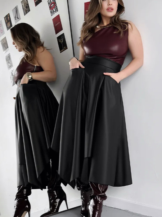Асимметрия сразу делает образ более сложным и стильным. Даже если сверху обычная футболка, такая юбка уже создаёт эффект «модного образа».