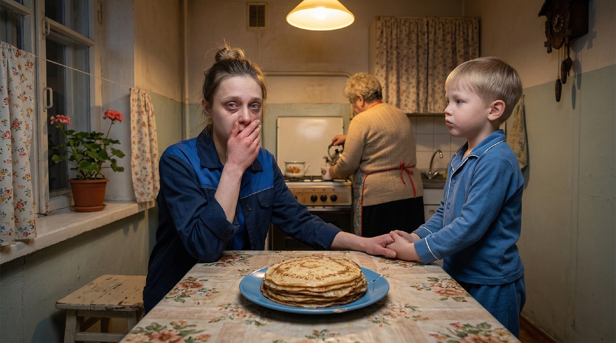 Жар пошёл по лицу — горячий, как кипяток. Чужая женщина кормит моего сына. Потому что я не могу. Потому что мне нечего поставить на стол в шесть тридцать утра, когда я уже час как еду в автобусе.