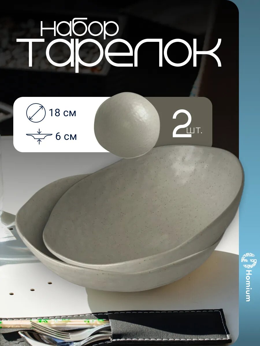 Набор из двух глубоких керамических тарелок с фактурной поверхностью — маленький кусочек природы на вашем столе. Неровная текстура снаружи контрастирует с гладкой глянцевой поверхностью внутри, создавая эффект «дорого-натурально». Диаметр 18 см, глубина 6 см — удобный размер для супа, салата или десерта.