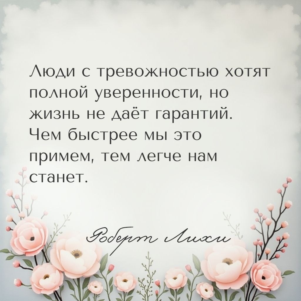 ». Его работы по терапии принятия и ответственности (ACT) и когнитивно-поведенческой терапии (КПТ) помогли тысячам людей справиться с тревогой и найти внутреннюю гармонию. В его цитатах — концентрация мудрости, научный подход и практичные советы для обретения душевного спокойствия. #психмем #цитатадня #тревога