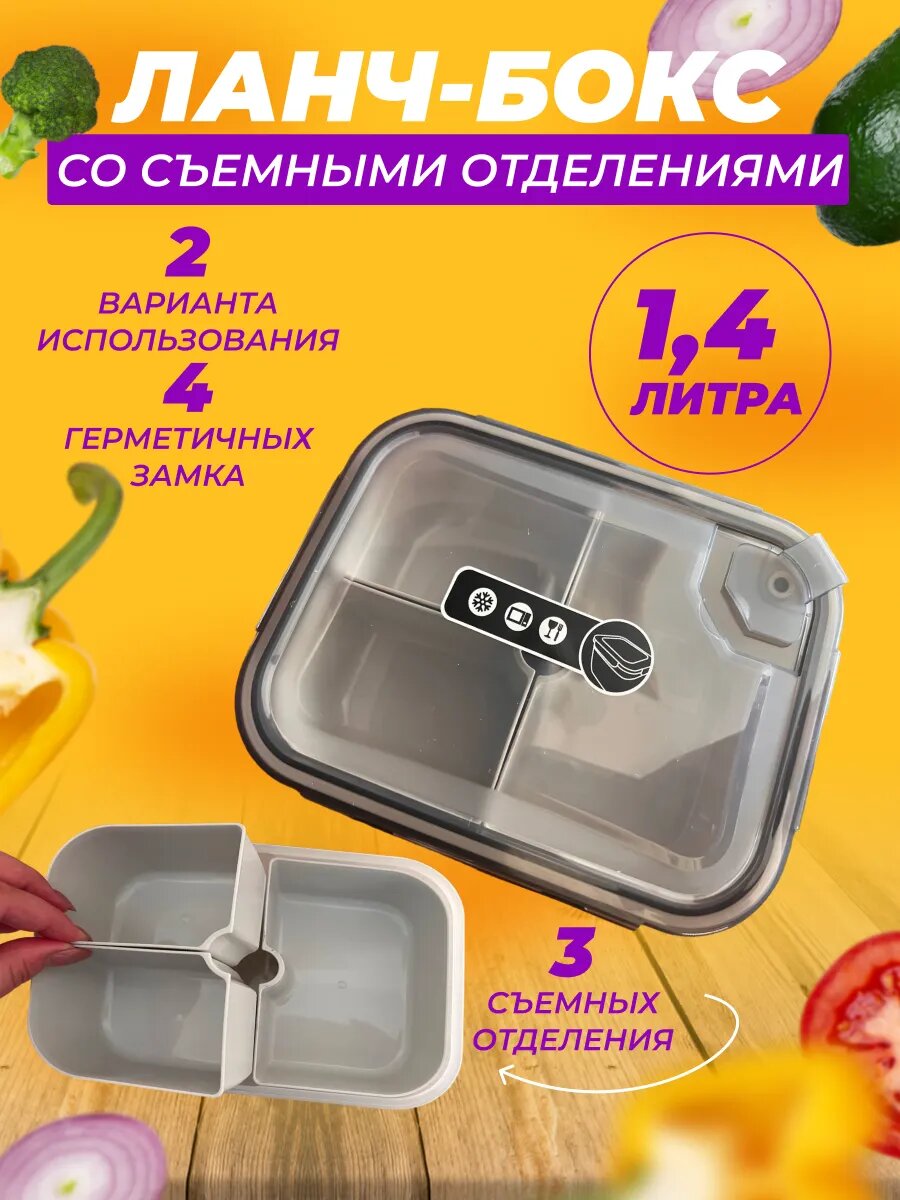 ЛАНЧ-БОКС С ОТДЕЛЕНИЯМИ, ВИЛКОЙ И ЛОЖКОЙ