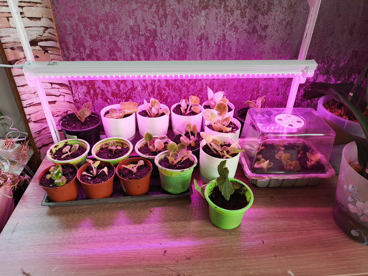 Сразу включила им подсветку. Часть фиалок поставила на фитильный полив. Еще осенью заказала специальные стаканчики с поддонами, наконец-то их использовала.