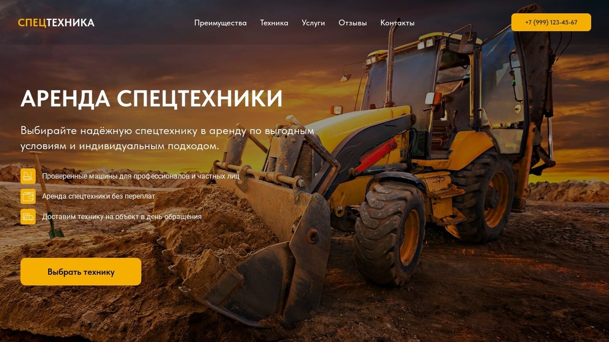 Заголовок: Готовый шаблон Tilda для сайта по аренде спецтехники
