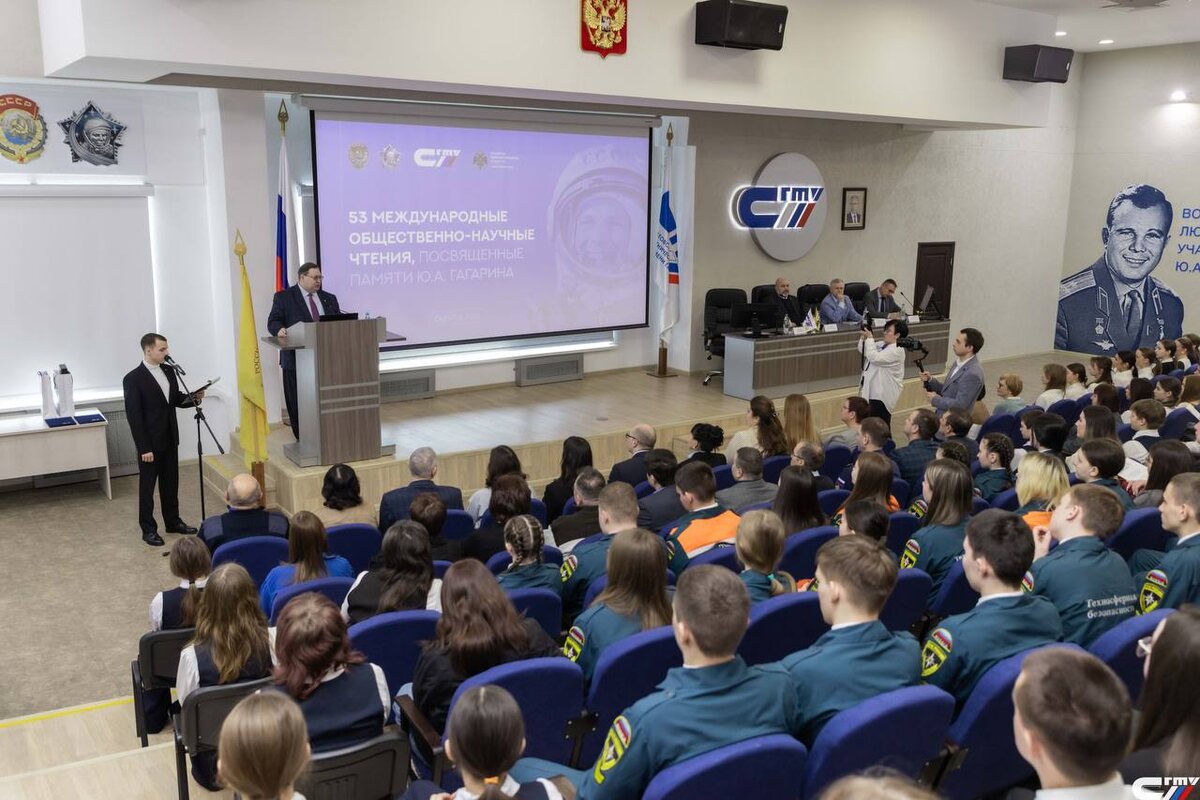 В саратовском Политехе прошло торжественное открытие 53-х Международных общественно-научных чтений, посвященных памяти Юрия Гагарина. Мероприятие открыло череду праздничных мероприятий к 65-летию первого полёта человека в космос. Напомним, что в честь юбилейной даты Президент России Владимир Путин подписал Указ о ежегодном проведении Недели космоса с 6 по 12 апреля. Участниками церемонии стали свыше 400 человек – представители органов власти, руководство вуза, преподаватели и студенты СГТУ, Профессионально-педагогического колледжа и Энгельсского технологического института (филиала) СГТУ, школьники региона. Кроме того, почётным гостем стал человек, который сам проделал путь от школьной мечты до настоящего космоса – лётчик-космонавт, Герой России Андрей Борисенко. Торжественное мероприятие открылось видеообращением заместителя Министра науки и высшего образования РФ Ольги Петровой: «Гагаринские чтения – традиция, которая позволяет нам сохранять память о великом человеке. Это уникальная в