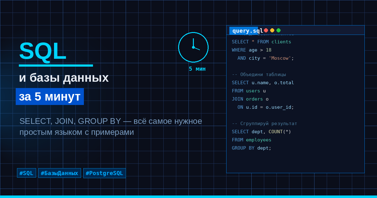 SQL это специальный язык для взаимодействия с данными в реляционный базах. С помощью SQL мы пишем запросы (команды) к базе данных, например, запрос чтобы получить конкретные данные , записать, обновить или удалить их.