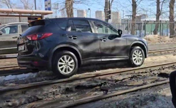 ⚠️ На улице Агеева водитель Mazda решил «измерить клиренс» трамвайными путями