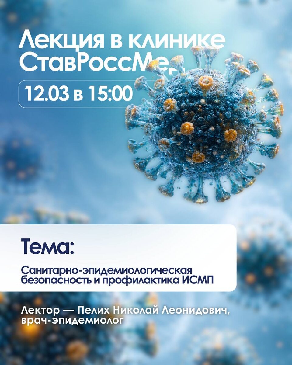 ! 12 марта в 15:00 в нашей клинике состоится лекция на тему: «Актуальные вопросы организации и контроля противоэпидемического режима в многопрофильной клинике. Санитарно-эпидемиологическая безопасность и профилактика ИСМП». 🧑🏻⚕️Лектор — Пелих Николай Леонидович, врач-эпидемиолог. На встрече обсудим важнейшие вопросы: • современные требования к противоэпидемическому режиму • профилактику инфекций, связанных с оказанием медицинской помощи (ИСМП) • практические аспекты обеспечения безопасности пациентов и персонала К участию приглашаются: врачи, средний и младший медицинский персонал клиник, а также представители профессионального сообщества частных медицинских организаций. Ждём всех, кто стремится к повышению качества и безопасности медицинской помощи💙