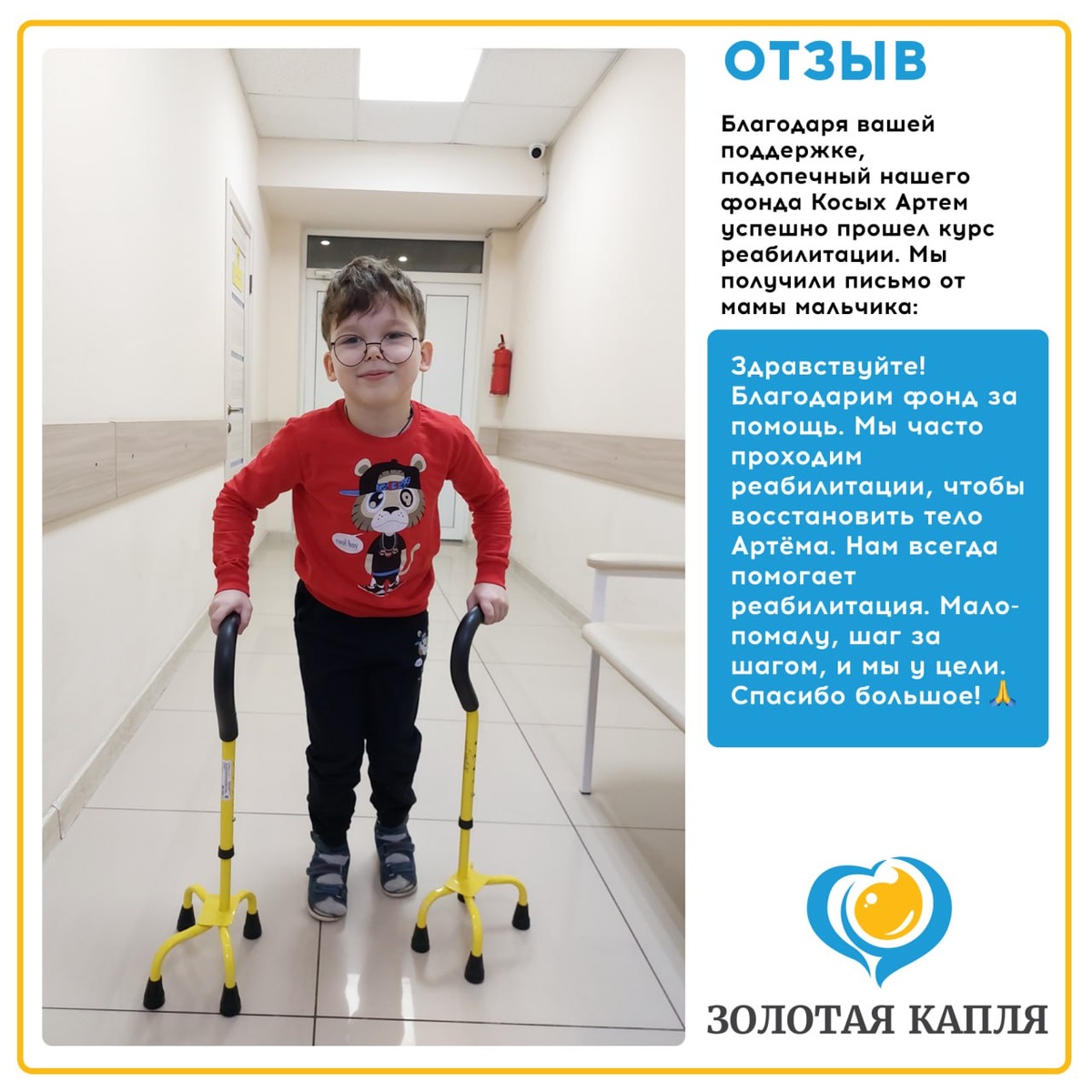 Благодаря вашей поддержке и помощи Артем Косых прошел курс реабилитации! Мы получили фото и отзыв, и просто не можем оставить это без
