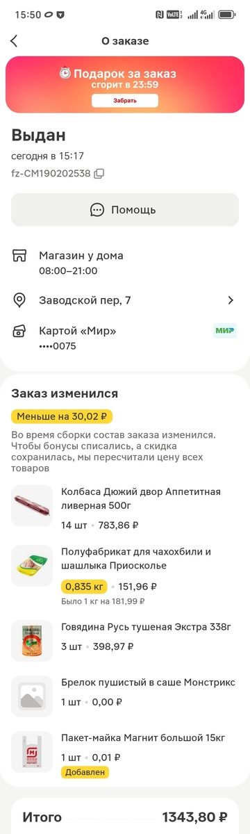 Я сделала заказ в "Магните" утром, а вот пошла за ним только после обеда.
